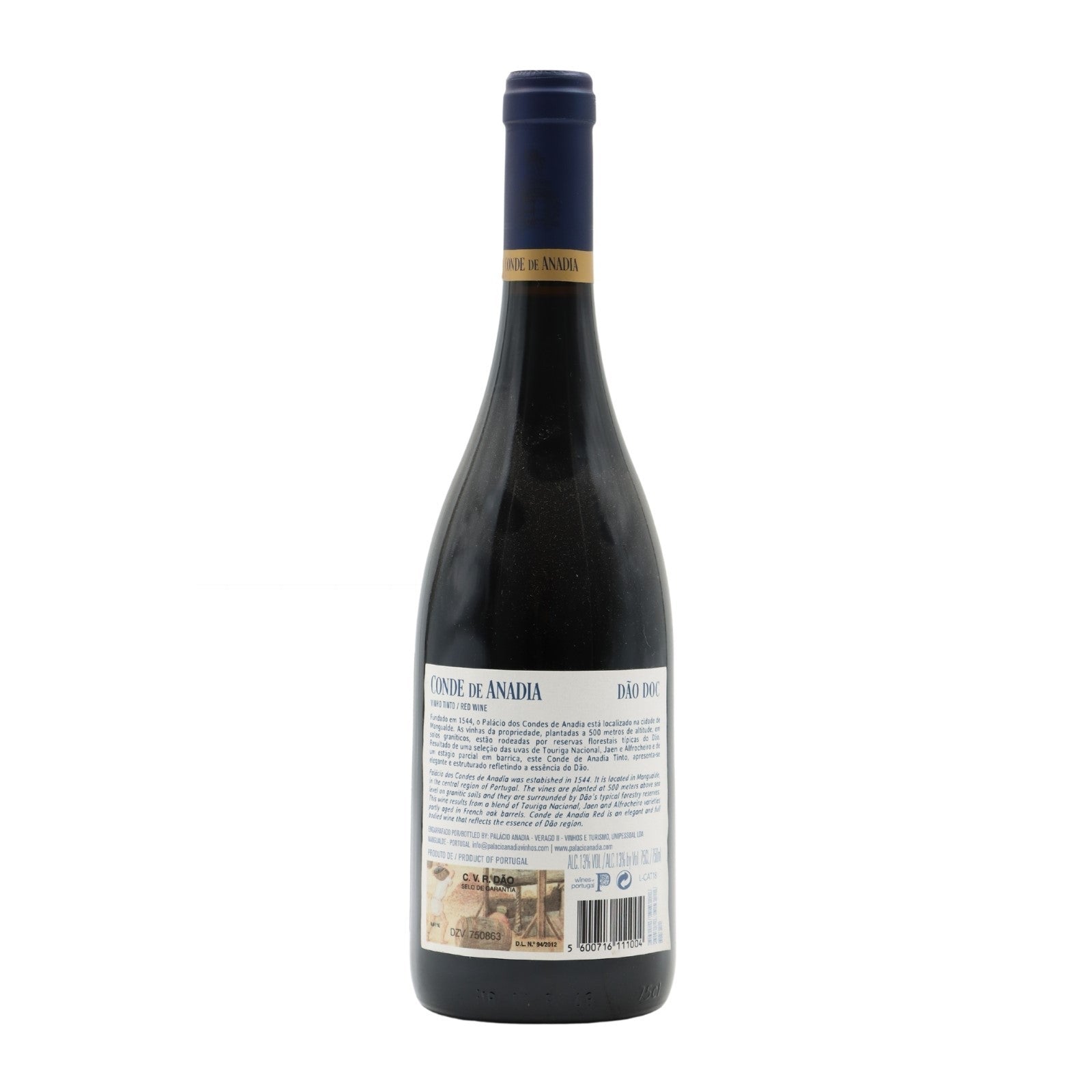 - As uvas que deram origem a este vinho provêm exclusivamente das vinhas do Palácio Dos Condes de Anadia em Mangualde, situado a cerca de 500 metros de altitude resultando num vinho elegante e estruturado, reflectindo a essência do Dão.
